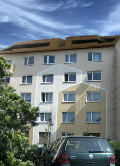 In der Ludwig-Landmann-Strasse in Frankfurt, Rödelheim sollen die beiden Wohnungen im obersten Stockwerk um den derzeit ungenutzten Dachraum erweitert werden.